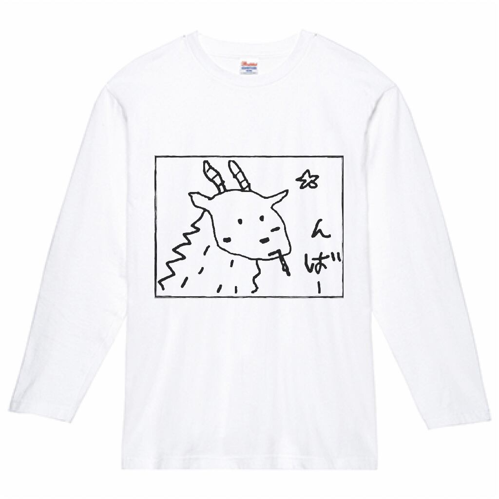 お絵描き伝言ゲーム「Gartic Phone」より爆誕した、山羊のイラストが描かれた長袖Tシャツです。